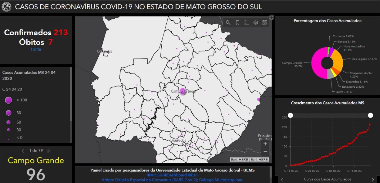 Um artigo sobre a difusão espacial do novo coronavírus no Estado, foi publicado por pesquisadores da Universidade Estadual de Mato Grosso do Sul (UEMS), onde eles apontam com mapas panorâmicos estatísticos da doença, origem, e expansão.