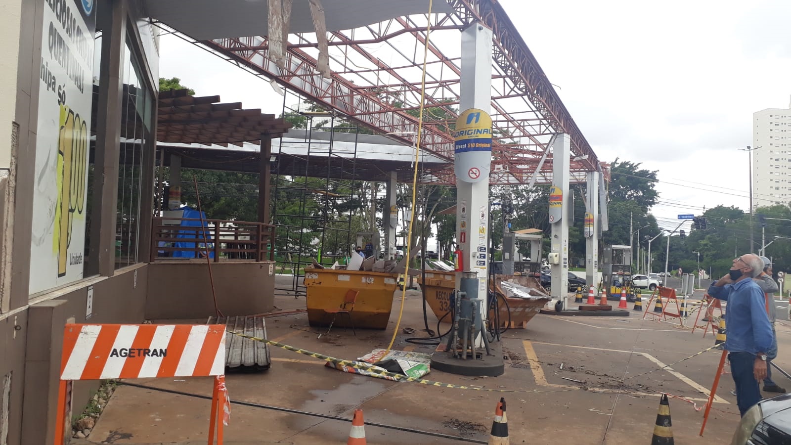 No dia do incidente, parteda estrutura caiu atingindo um veículo que estava parado embaixo e a bomba de combustível, que foi retirada após ser atingida.