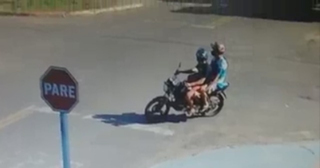 As imagens mostram dois homens em uma moto como que se estivessem escolhendo suas vítimas. Em certo momento eles visualizam a idosa e com sua sobrinha adolescente, eles seguem em direção as duas e espacam as vítimas e as roubam.
