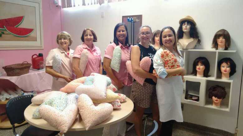 Inspiradas no projeto Haert Pillow (almofada de coração), voluntárias da Corrente do Bem do Condomínio Spazio Classic confeccionaram e doaram as "almofadas de coração" para a Rede Feminina de Combate ao Câncer em Mato Grosso do Sul nesta sexta-feira (2).