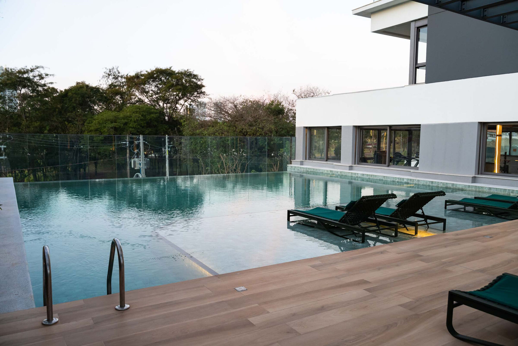 Na área de lazer, o conjunto aquático reúne piscina coberta, spa & sauna, deck molhado e uma deslumbrante pool house com piscina de borda infinita voltada ao verde do parque — um convite diário ao relaxamento.