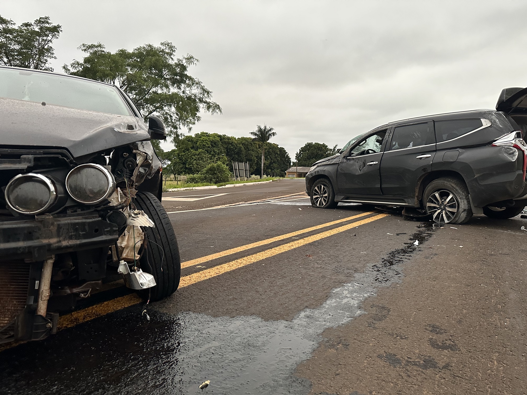 Com o impacto, a caminhonete rodou na pista e os dois veículos ficaram bastante danificados