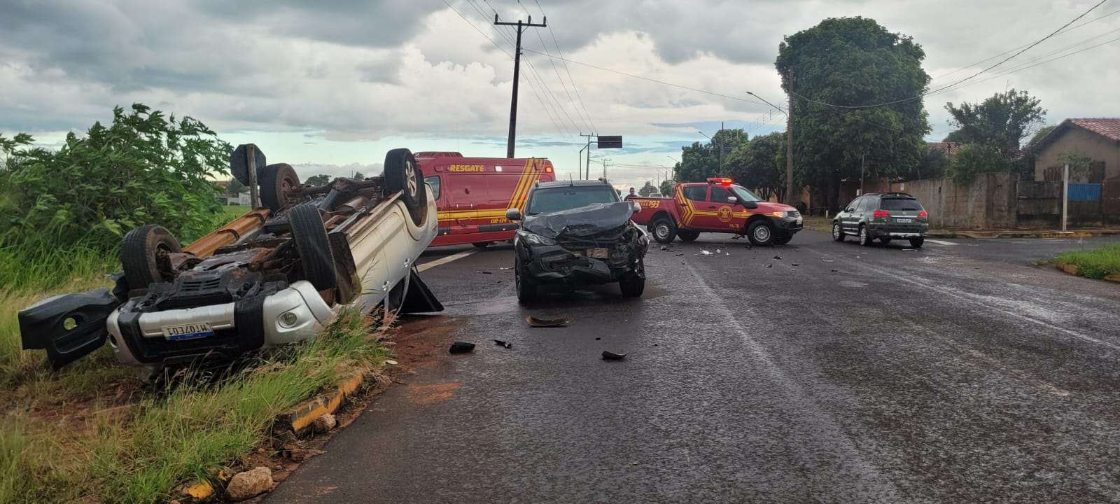Uma colisão entre duas caminhonetes, na tarde de domingo (23), terminou com um dos veículos capotado no cruzamento da Rua Josina Garcia de Melo com Avenida Ramez Tebet. O Corpo de Bombeiros foi acionado, mas teve apenas danos materiais, os envolvidos não apresentaram lesões corporais aparentes.