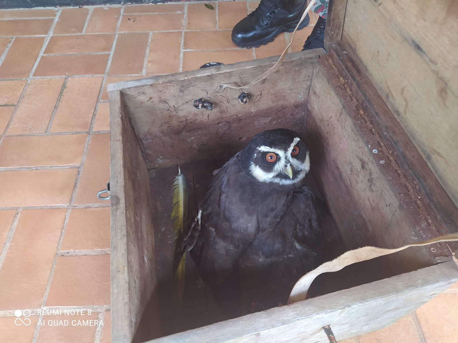 Conforme a Polícia Militar Ambiental (PMA) se trata de um animal silvestre, de uma espécie de coruja conhecida como murucututu-de-barriga-amarela (Pulsatrix perspicillata). Ela foi encontrada pelo morador do local que acionou a equipe.