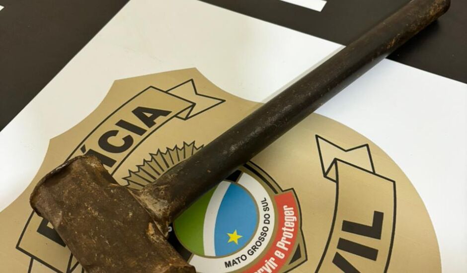Marreta utilizada pelo jovem para agredir a mãe (Divulgação/PCMS)