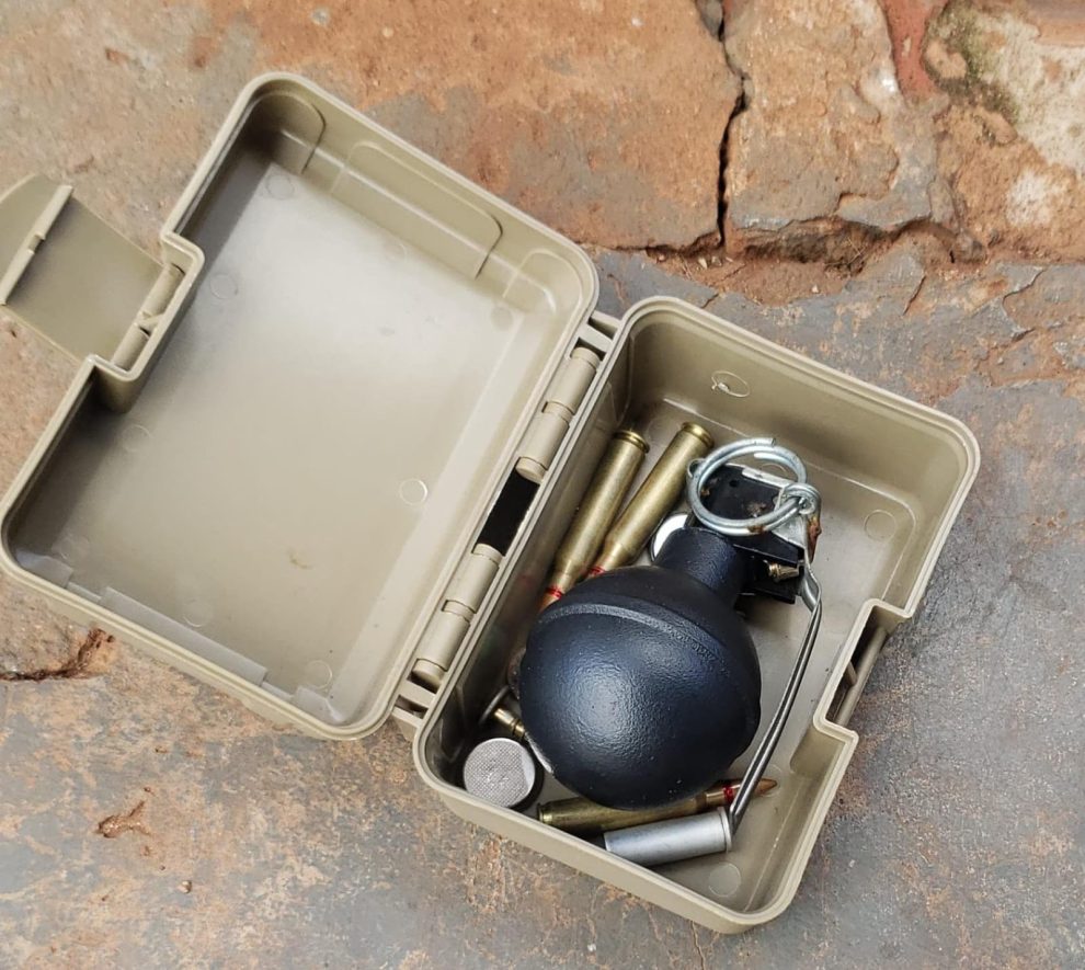 No interior do imóvel, os agentes encontraram ainda três munições de fuzil calibre 5.56, duas munições de pistola calibre 380 e a granada (Foto: Divulgação)