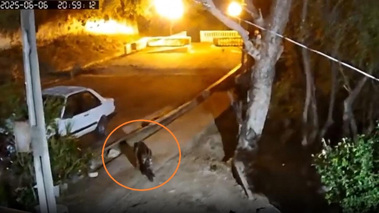 Pelas imagens da câmera de segurança, divulgadas pelo site Diário Corumbaense, a onça caminha tranquilamente, quando ela percebe um barulho e começa a sair do local e gritos e barulhos são ouvidos: era a família que visualizou pela câmera e saiu para espantar o felino.