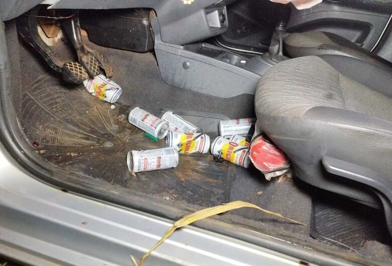 Latas de cerveja estavam no veículo do motorista (Osvaldo Duarte/Dourados News)