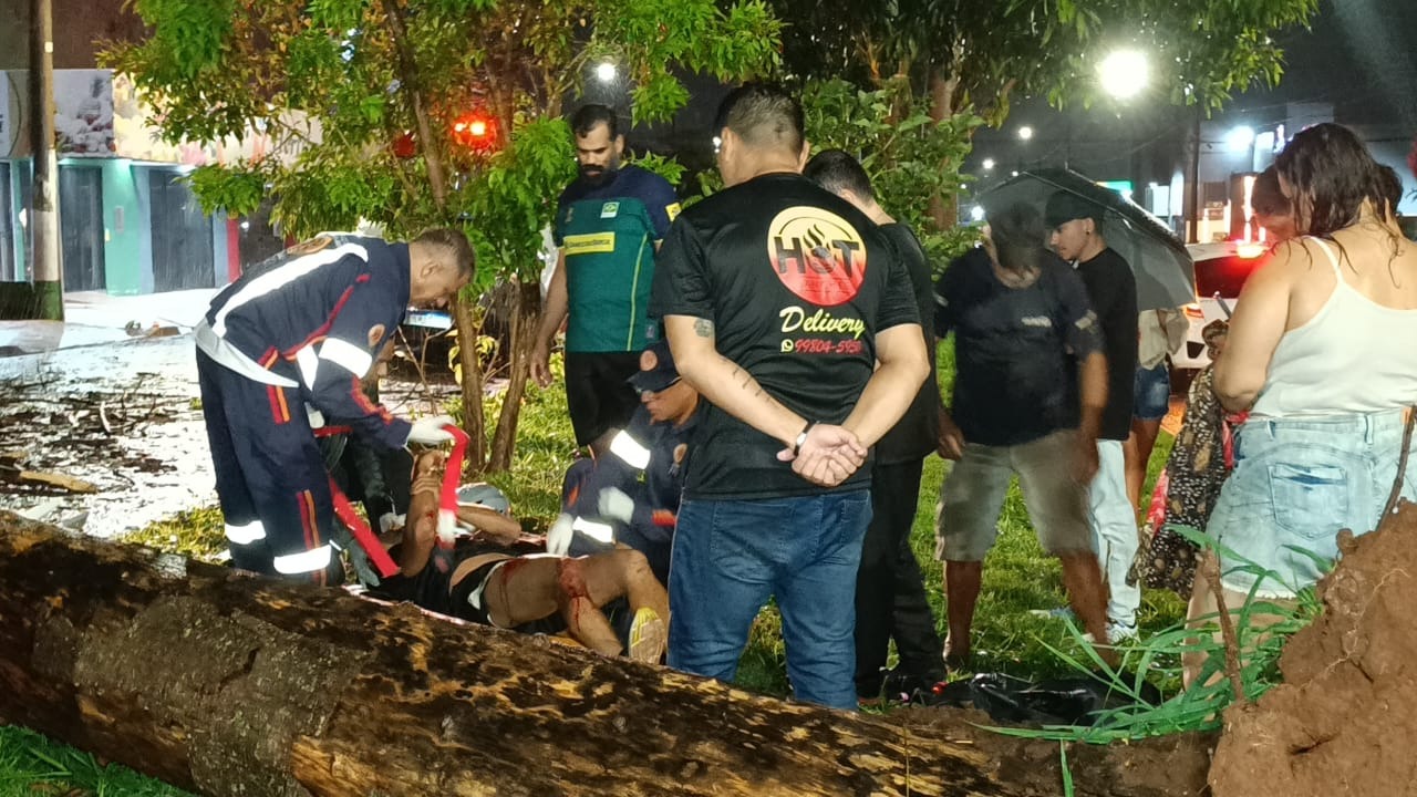 Motociclista, que não teve a identificação revelada, ficou ferido durante a noite desta sexta-feira, dia 16, após ser atingido por uma árvore durante o temporal que atingiu a cidade de Dourados - a 225 quilômetros de Campo Grande.