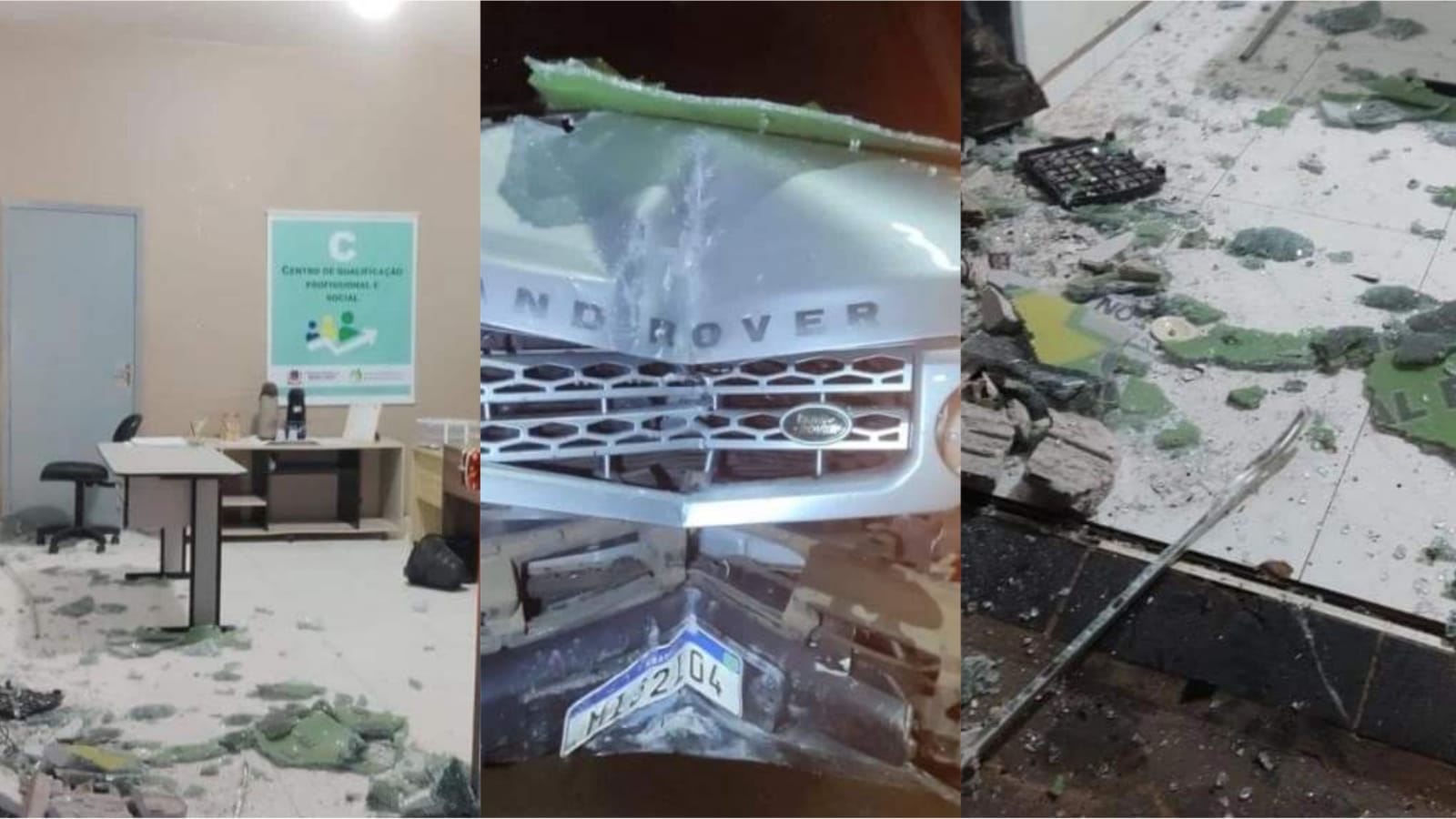 Land Rover ficou danificada e prédio ficou bem destruído (Divulgação/Polícia Civil de MS)