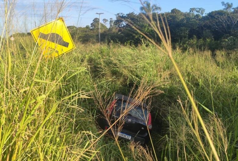 Fiat Pálio parou na vegetação existente as margens da rodovia (Dourados News)