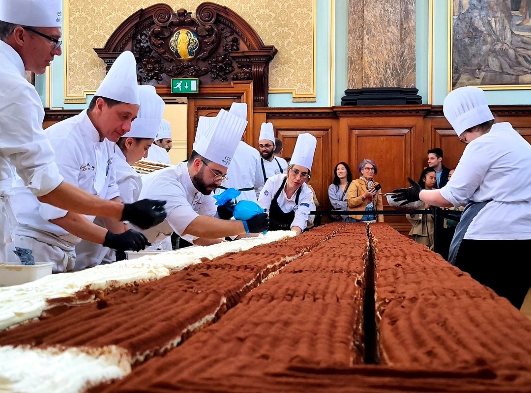 Um grupo de mais de 100 chefs italianos realizou em Londres, o preparo do mais longo tiramisù da história, medindo 400 metros de comprimento que quebrou o recorde mundial e deve entrar para o Guinness Book.