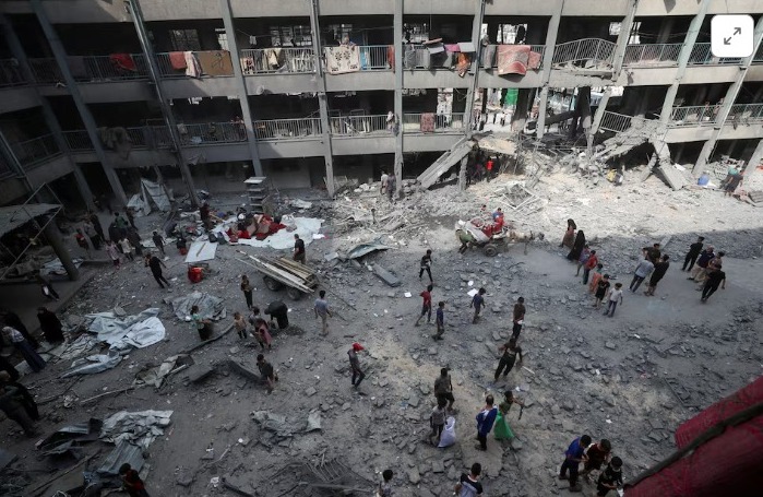 Tanques israelenses avançaram para as áreas orientais do subúrbio de Zeitoun, na Cidade de Gaza, e bombardearam diversas áreas no norte, enquanto aeronaves bombardearam pelo menos quatro escolas após ordenarem que centenas de famílias abrigadas lá dentro saíssem, disseram moradores.