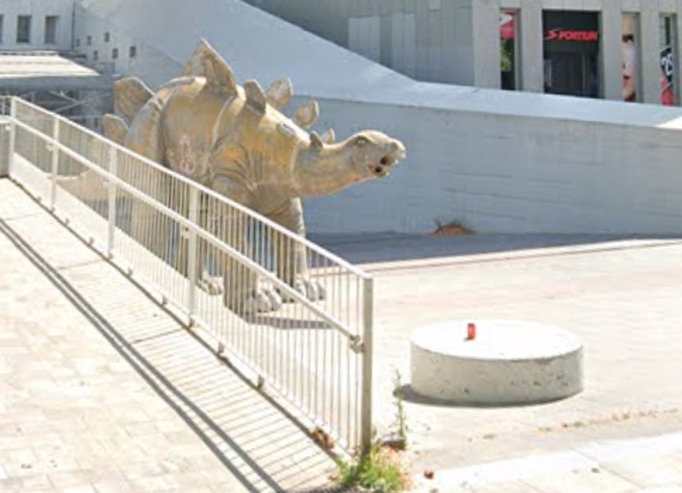 Um homem de 40 anos morreu depois de ficar preso dentro de uma estátua de dinossauro em Santa Coloma de Gramanet, uma cidade perto de Barcelona, na Espanha, informou a polícia nesta terça-feira (25).