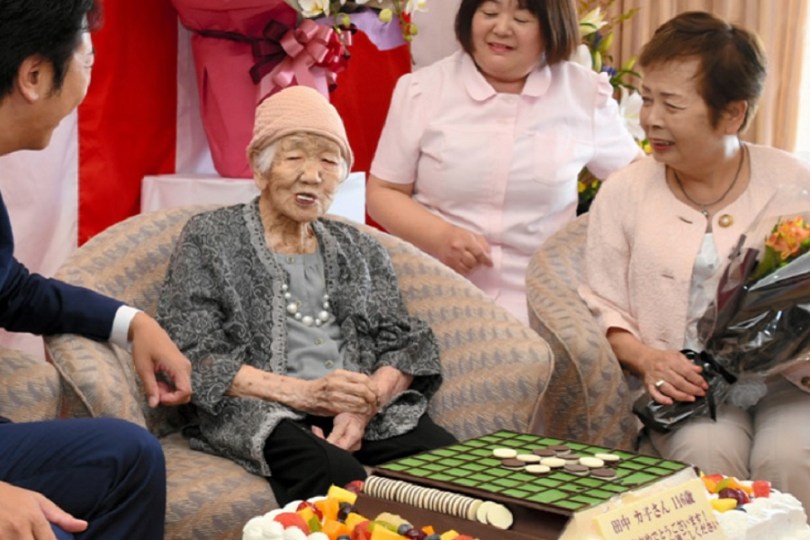Tanaka, faz aniversário oficialmente no dia 2 de janeiro. Ela foi reconhecida no ano passado como a pessoa viva mais velha do planeta, com 116 anos e 66 dias em 9 de março, segundo o Livro Guinness dos Recordes.