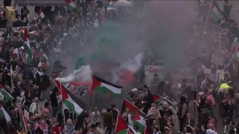 Milhares de manifestantes pró-palestinos se reuniram em Malmo, na Suécia, nesta quinta-feira (09) para protestar contra a participação de Israel na segunda semifinal do concurso de música Eurovision, de 2024.