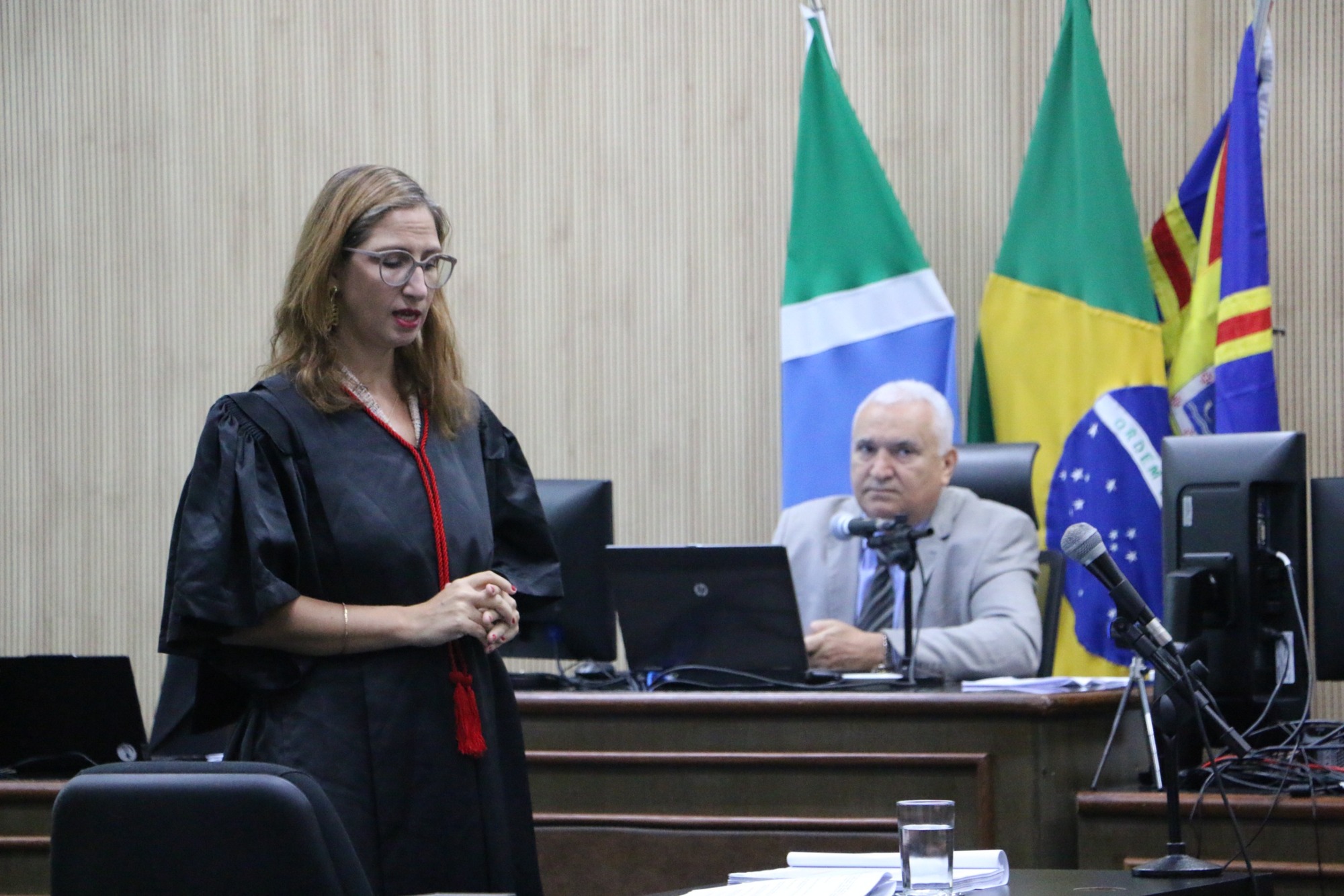 Promotora de Justiça e juiz durante o julgamento - Foto: JD1