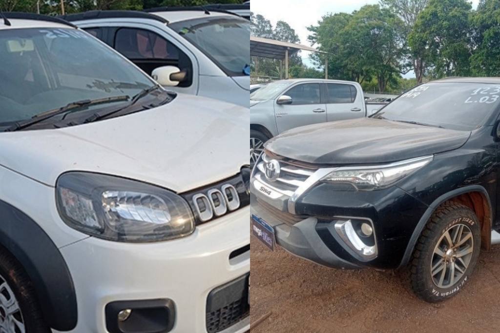 Entre os destaques estão caminhonetes Chevrolet S10, Toyota Camry 2013 blindada, Hilux SW4 2013 blindada, além de carros populares como Fiat Uno e Doblò.