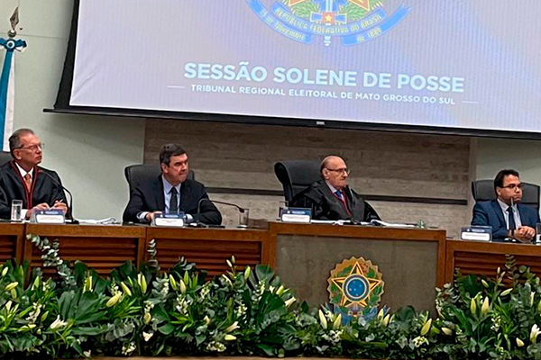 “Quis Deus me agraciar, pela segunda vez, com a honra e o privilégio de assumir a presidência desse egrégia Tribunal Regional Eleitoral, e agradeço aos nobres colegas do Tribunal de Justiça do Estado de Mato Grosso do Sul, e também aos nobres pares pela confiança em mim depositada”, comentou o magistrado.