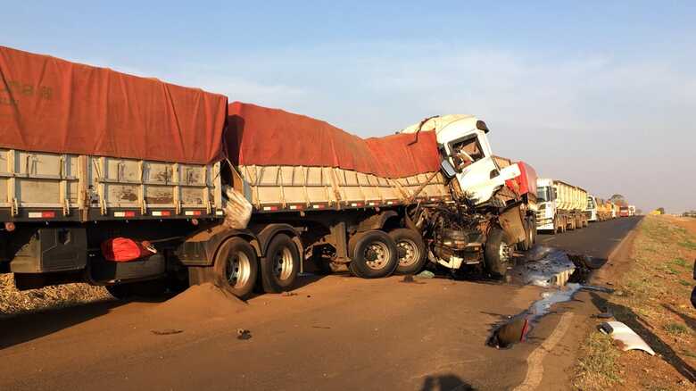 Duas carretas e três veículos de passeio se envolveram em um grave acidente na tarde desta segunda-feira, na BR-306MS, próximo ao aeroporto Júlio Alves Martins, na cidade de Chapadão do Sul.
