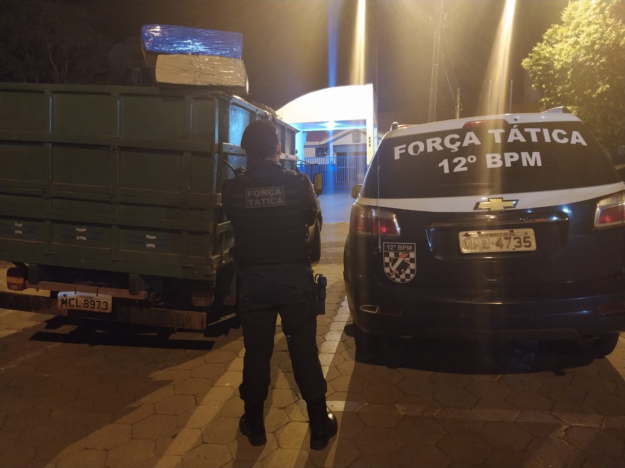 Foram encontrados 42,34Kg de skank e 3,4kg de maconha escondidos na carroceria e no interior do veículo, além disso foi descoberto que a placa do automóvel estava adulterada.