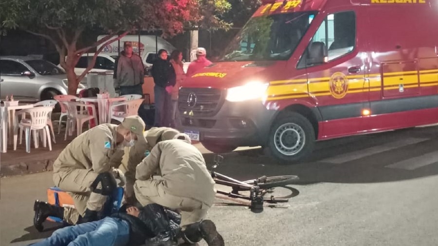 Um adolescente, de 16 anos, ficou ferido ao sofrer um acidente durante o final da tarde de segunda-feira (30), após ser atingido por um carro no cruzamento da Avenida José Heitor de Almeida Camargo com a rua Redentor, na região central de Nova Andradina.