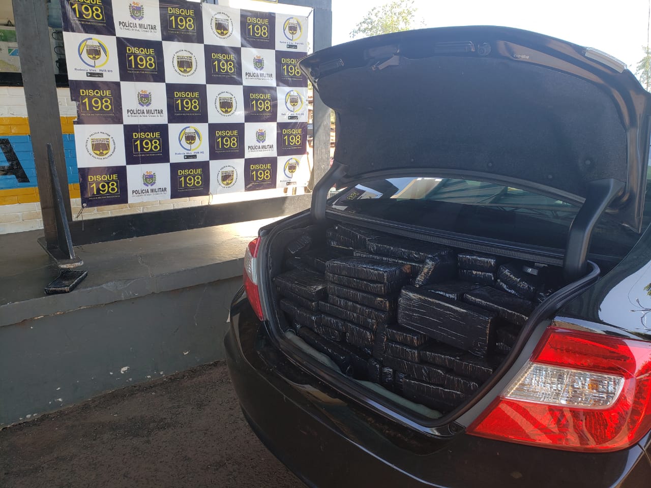 A droga estava no porta-malas do veículo (Reprodução/PMR)