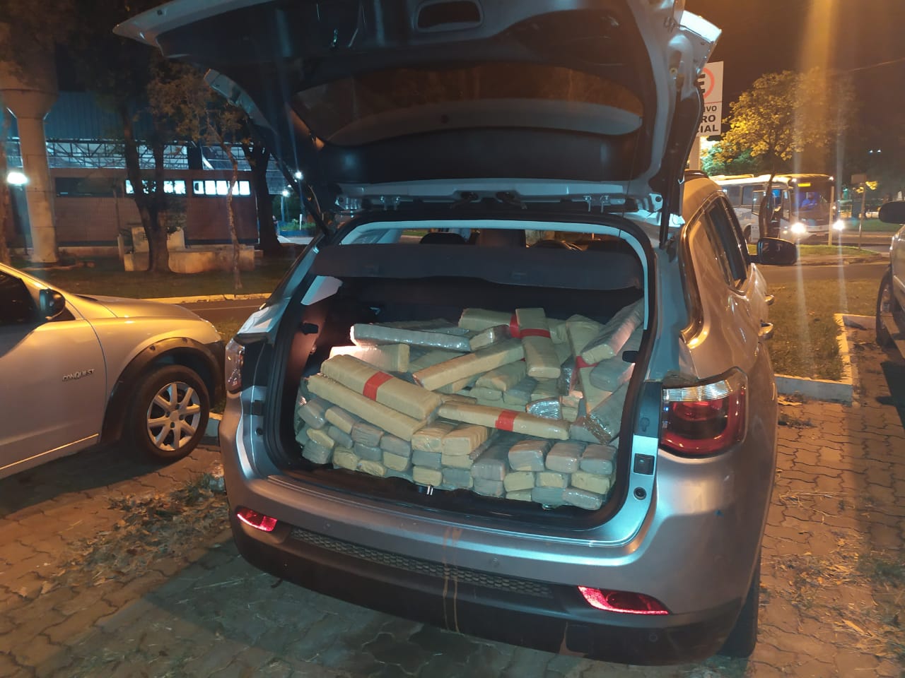 A droga estava espalhada no porta-malas e banco traseiro do carro (Reprodução/Assessoria)