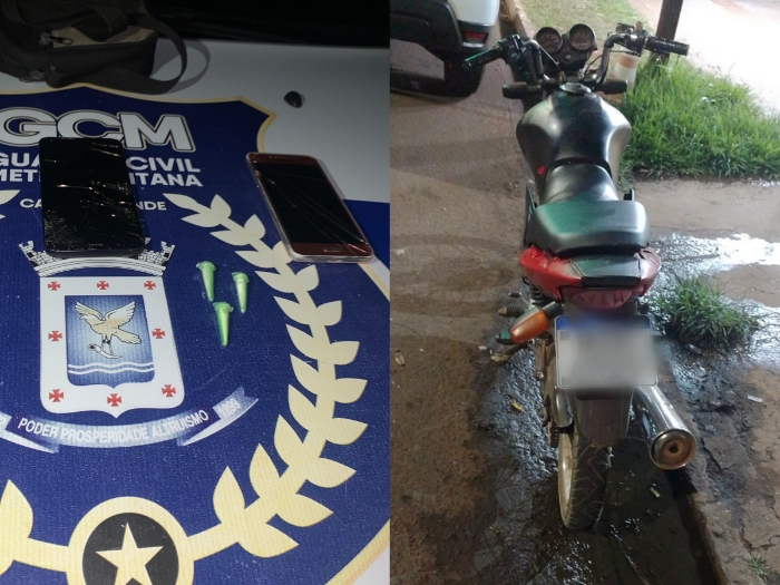 Foram apreendidos dois aparelhos celulares e a motocicleta que foi encaminhada para a Derf (GCM)