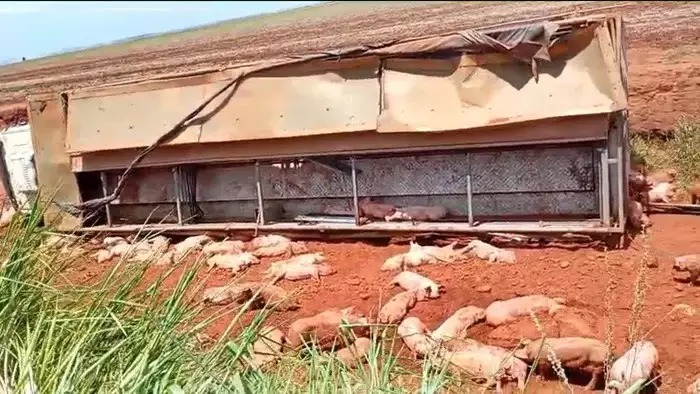 O caminhão fazia parte de um comboio com três veículos que transportavam porcos jovens para granjas da região. Com o tombamento, vários animais morreram no local devido ao impacto, enquanto outros ficaram feridos. Alguns leitões que sobreviveram ficaram espalhados pela vegetação próxima ao ponto do acidente.
