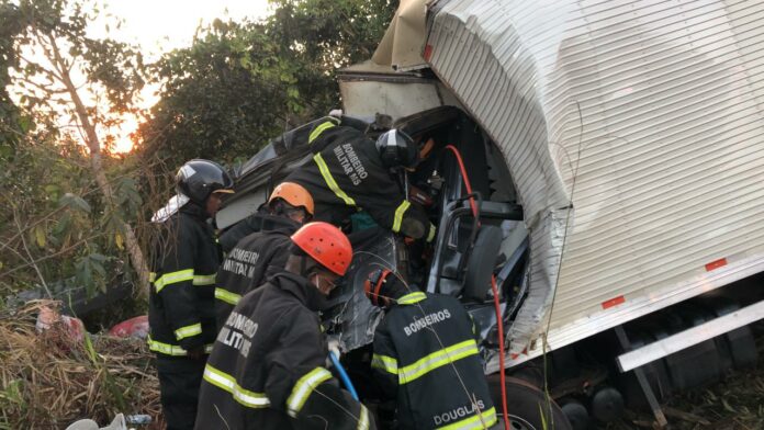 Um motorista, que não teve a identidade divulgada, ficou preso às ferragens do caminhão que conduzia após um grave acidente na rodovia BR-262, entre os municípios de Água Clara e Três Lagoas, na tarde de quinta-feira (20).