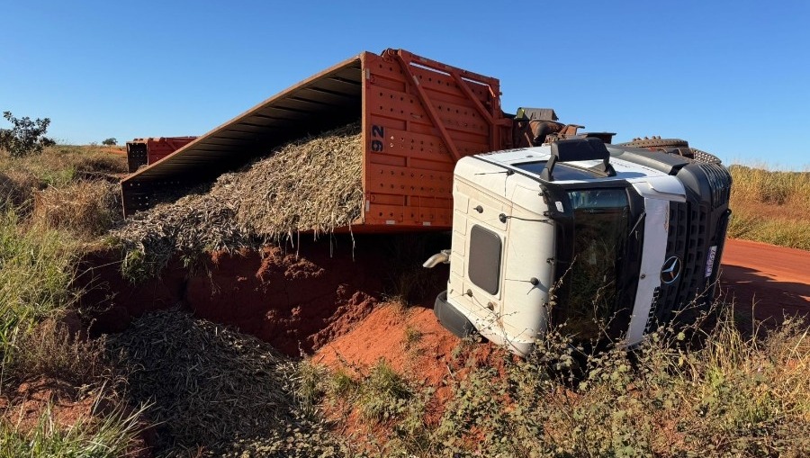 Uma carreta canavieira tombou durante a tarde de quarta-feira (18), na estrada cascalhada da MS-473, trecho que liga o perímetro urbano de Nova Andradina ao bairro Laranjal. Apesar da gravidade do acidente, o motorista saiu ileso.