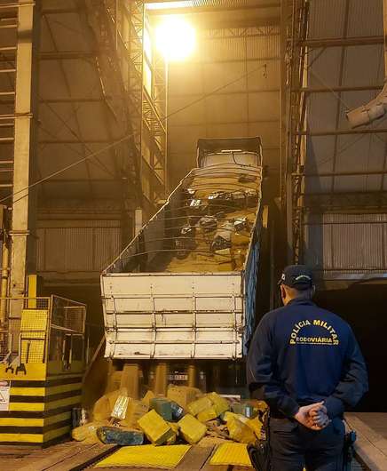 Segundo da PMR, ele conduzia uma carreta carregada com soja, mas durante a abordagem os policiais desconfiaram e encontraram fardos com tabletes de maconha que pesaram quatro toneladas.