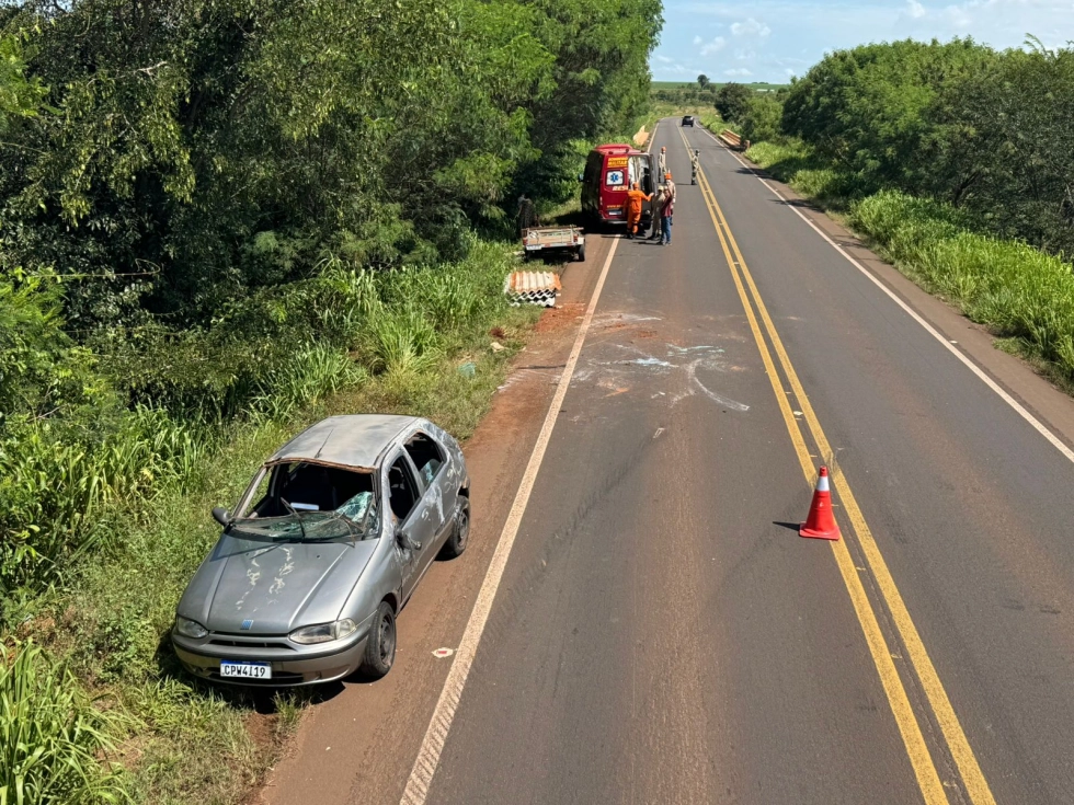 Um veículo Fiat/Palio tombou no início da tarde desta quinta-feira (2) na rodovia BR-376, no município de Nova Andradina. O acidente ocorreu nas proximidades da ponte do Córrego do Baile, na saída para Ivinhema.