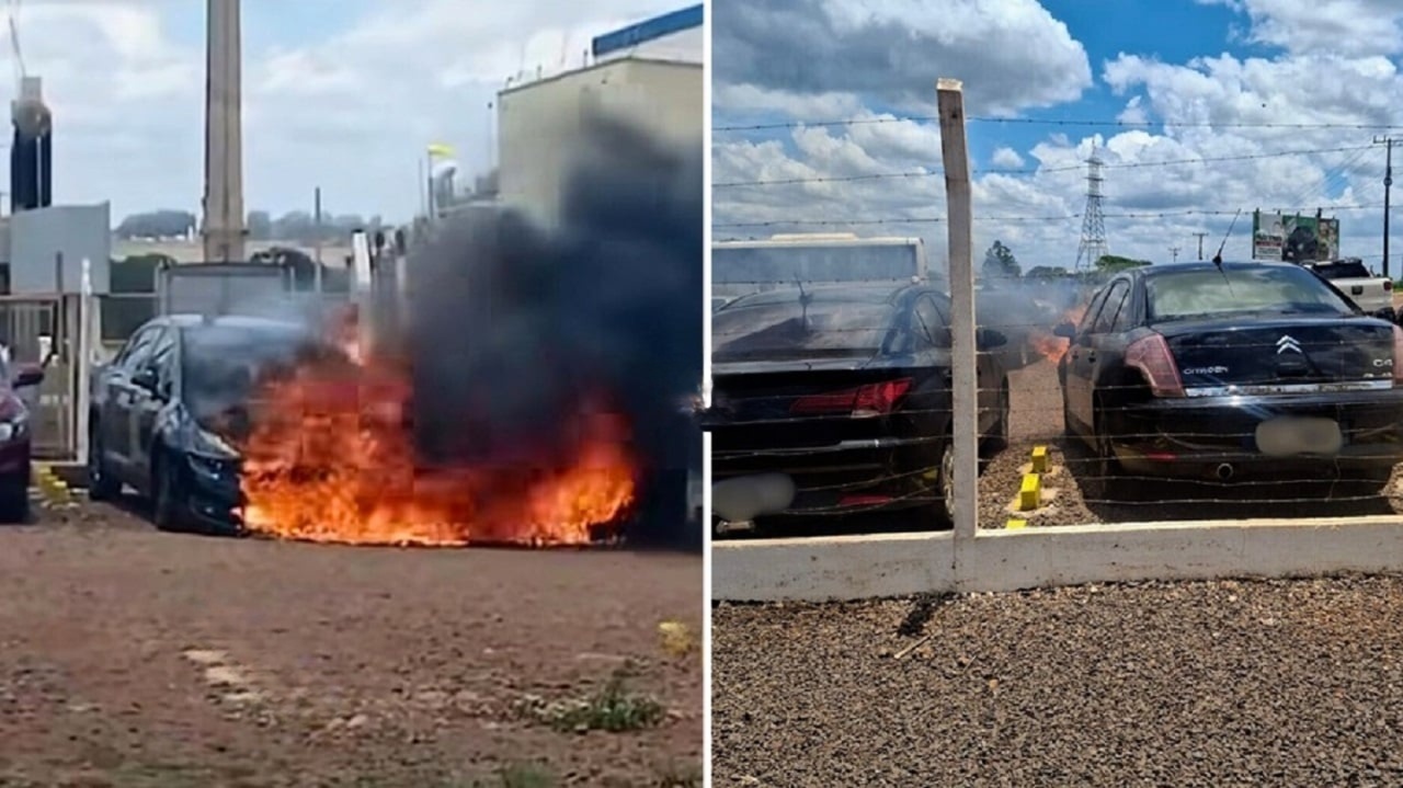 Dois carros foram consumidos por um incêndio na manhã desta sexta-feira, dia 7 de novembro, no estacionamento de um frigorífico, em Sidrolândia - 70 quilômetros de Campo Grande.