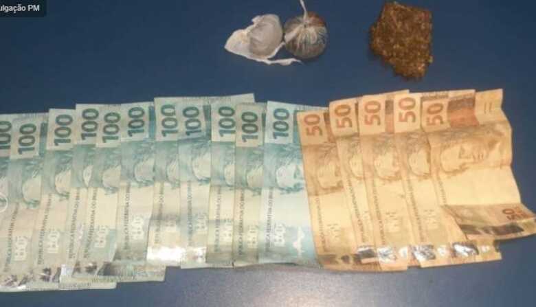 Em seguida, os policiais foram até a residência da autora, onde após buscas foram encontrados mais 54,7 gramas de maconha embaixo do guarda-roupas, encontraram ainda produtos que eram utilizados para o preparo de entorpecentes, uma quantia de R$ 1,3 mil dentro do guarda roupas e mais R$ 50 com o autor.