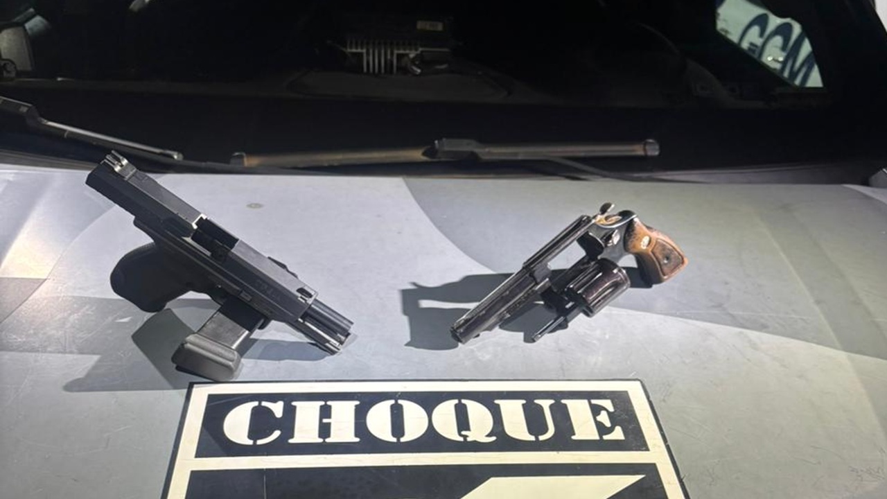 As armas, um revólver e uma pistola, foram encontradas abandonadas em um ponto de ônibus na rua Elmira Ferreira de Lima, esquina com a rua Antoninho Zandomenegighi, no bairro Morada do Sossego.