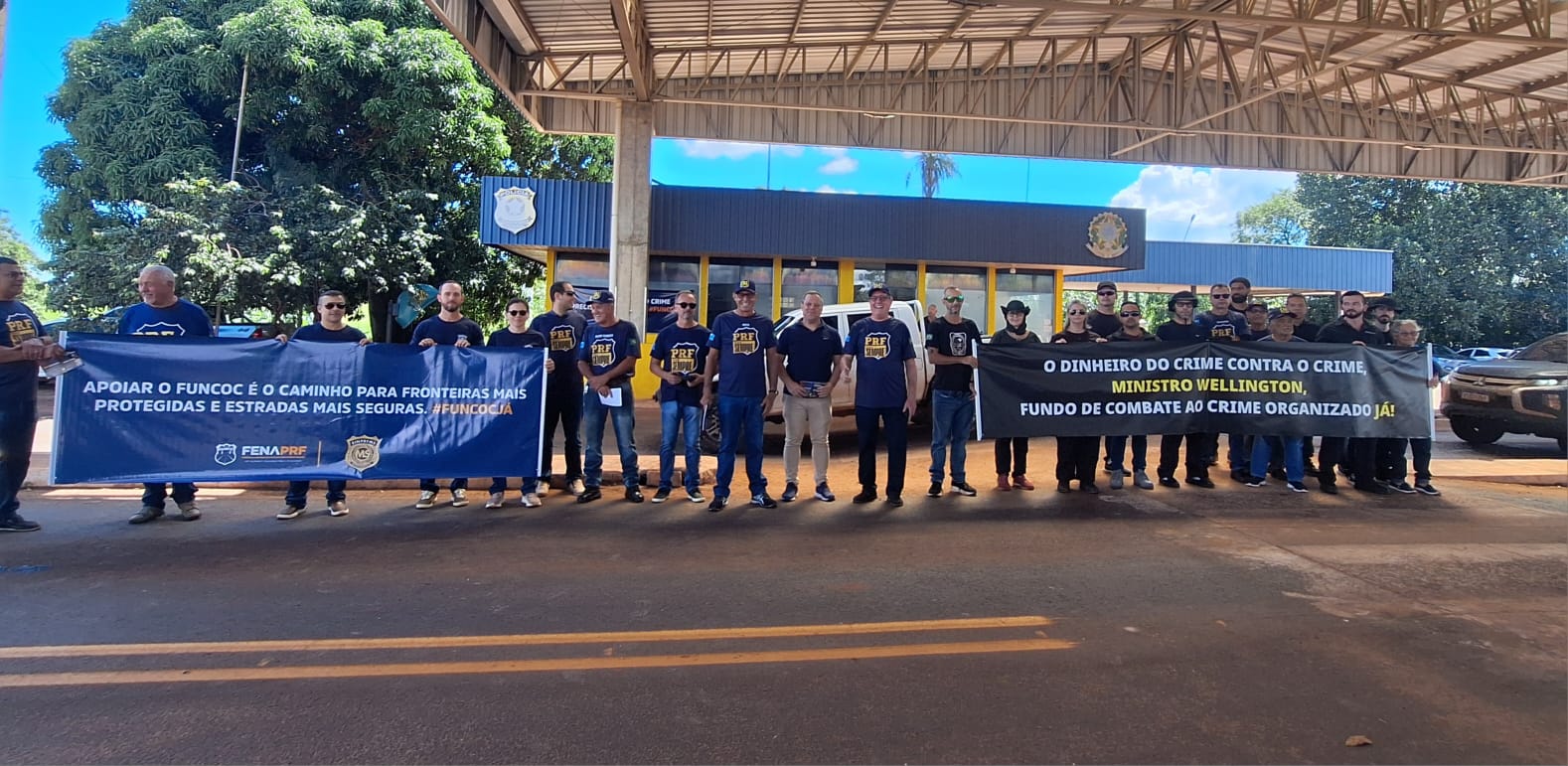 Policiais rodoviários federais e policiais penais federais realizaram mobilização na manhã desta sexta-feira (27) na BR-262, em Terenos, para defender a criação do Fundo Nacional de Combate ao Crime Organizado.