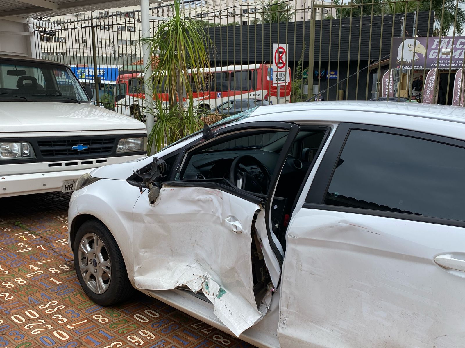 A motorista de um Ford Fiesta escapou de um acidente fatal após fazer uma conversão indevida na Rui Barbosa com Luís Ceciliano Vilares, na Vila Glória, região central de Campo Grande na manhã desta segunda-feira (19).