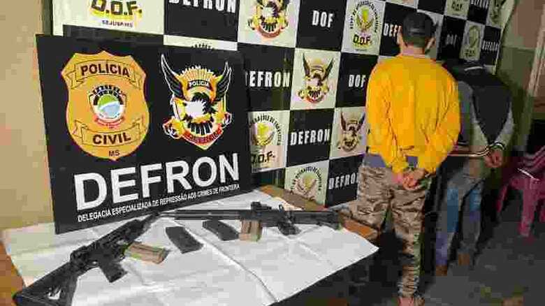 Dois paraguaios foram presos por policiais da Delegacia Especializada de Repressão aos Crimes de Fronteira (Defron), no final da tarde desta segunda-feira (28). A dupla foi flagrada com dois fuzis de uso militar e um carro de luxo, em Ponta Porã, municipio sul-mat-grossense que faz fronteira com Pedro Juan Caballero, no Paraguai.