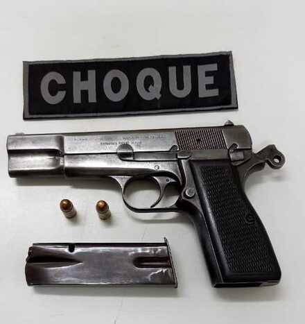 Segundo informações policiais, a equipe fazia rondas na região, quando se depararam com os suspeitos que desceram do carro rápidamente e entraram em um imóvel. Eles foram então abordados e durante as buscas no carro, a equipe encontrou uma pistola municiada.