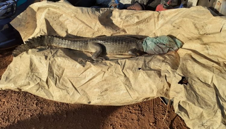 O jacaré estava coberto por uma lona e o fazendeiro não contou como caçou o animal. A equipe percebeu contusões na cabeça do animal, aparentando pauladas.