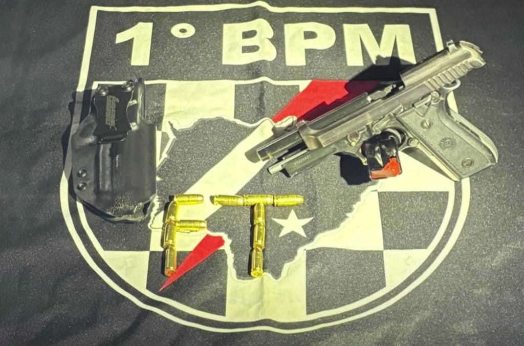 Diante das informações, os policiais retornaram ao interior da casa noturna, onde localizaram Andre Antunes Ponce de Morais. Ele foi conduzido para a parte externa do estabelecimento e, durante a busca pessoal, os militares encontraram em sua cintura uma arma de fogo de uso restrito, da marca Taurus, modelo PT100AF, calibre .40, com 11 munições intactas, recebendo voz de prisão.