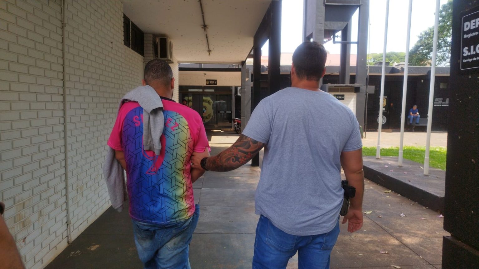 Diante da situação, as equipes policiais realizaram diversas diligências no intuito de capturar o autor, e assim constatou-se que ele estava cumprindo pena no Presídio Semiaberto de Dourados. A equipe deslocou-se ao estabelecimento prisional, efetuando a captura e condução do autor.