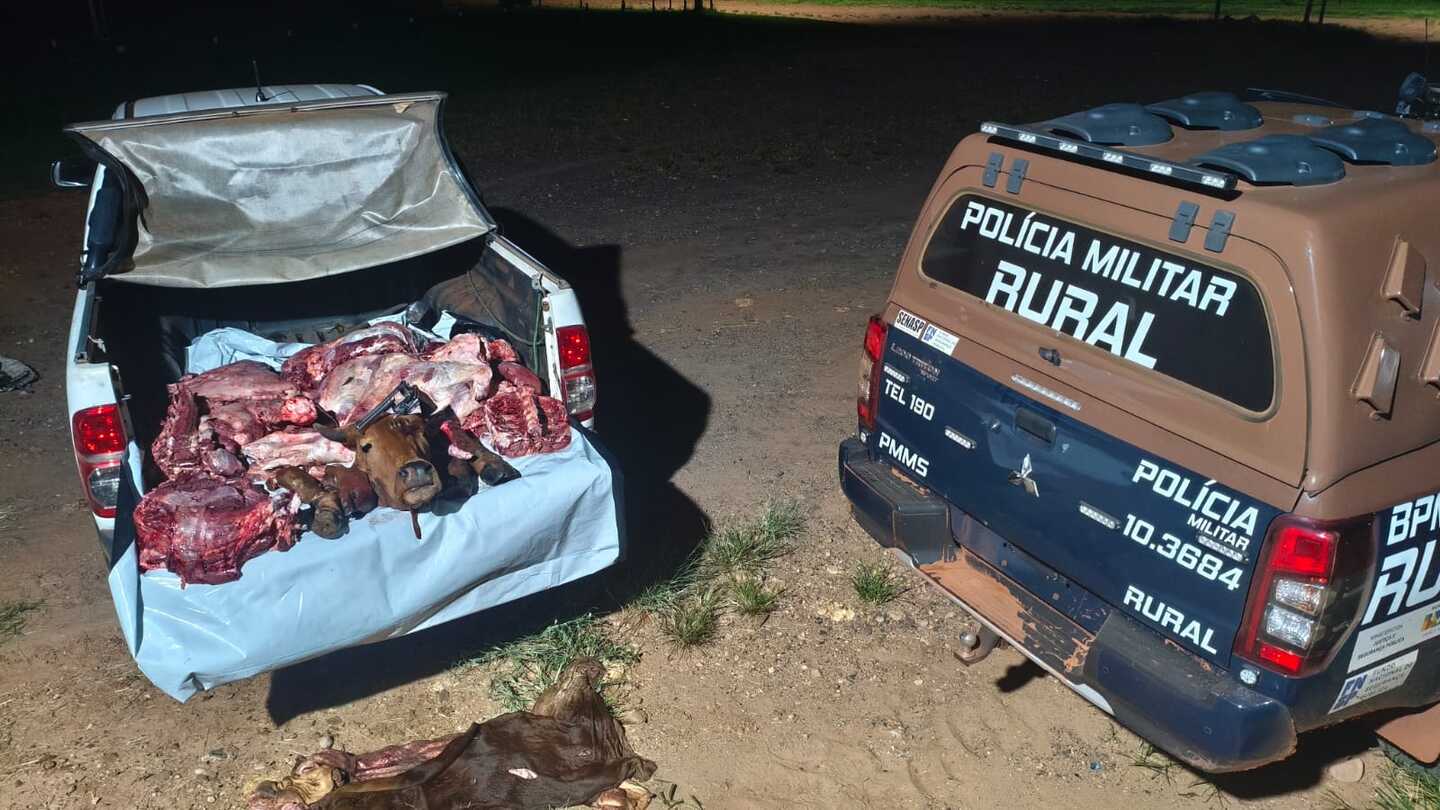 Homem, que não teve a identificação revelada, foi preso pela Polícia Militar, na MS-338, em Santa Rita do Pardo, durante a noite desta quarta-feira, dia 7, após roubar um gado e carneá-lo.