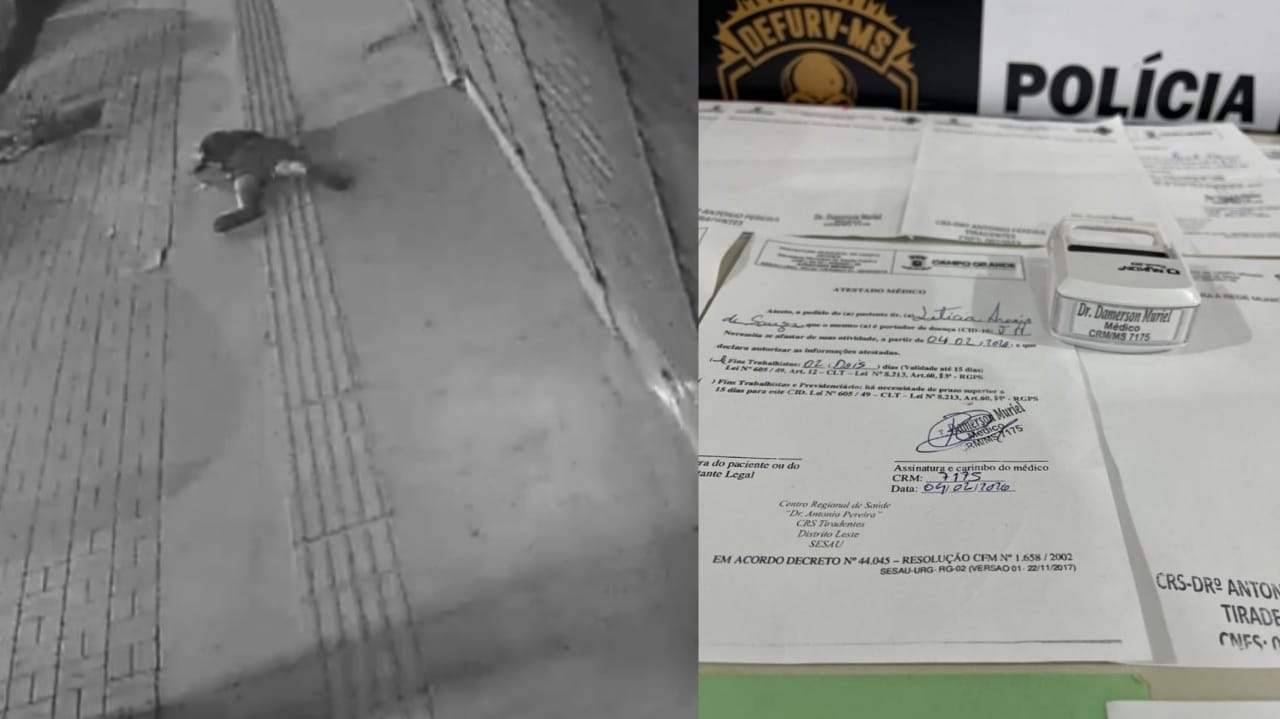 A prisão preventiva foi cumprida em via pública, enquanto os policiais monitoravam um ponto estratégico para localizar o investigado. Durante a abordagem, foram encontrados com ele atestados médicos em branco, um carimbo de um profissional de saúde e outros documentos já preenchidos com nomes de pacientes.