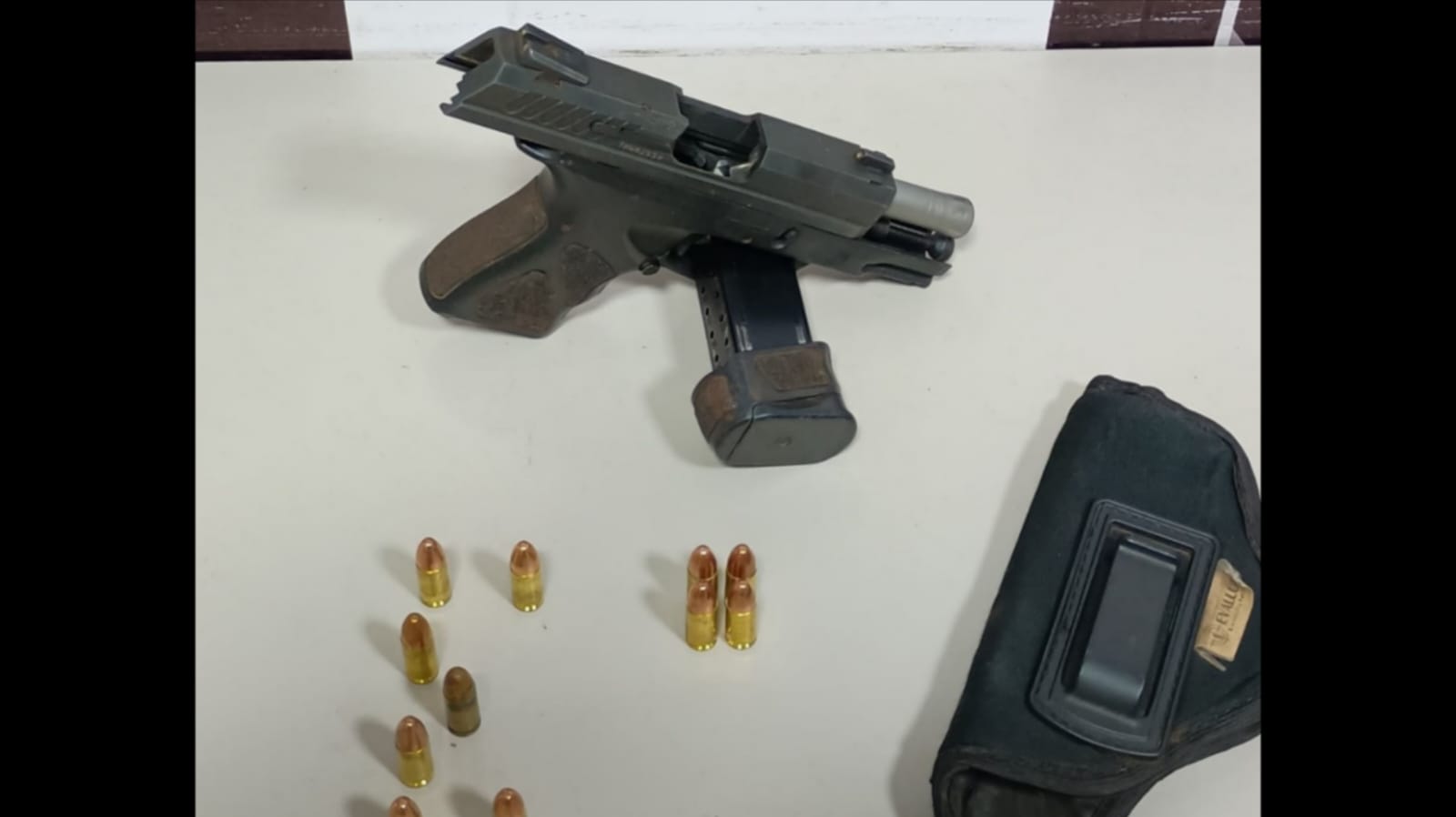 A Polícia Militar foi então acionada e apreendeu a arma, uma pistola 9mm. Durante verificação, foi constatado que a arma estava devidamente registrada.