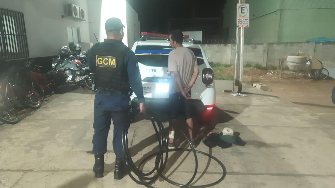 Um homem identificado como Joilson Maidana foi detido com cerca de 10 metros de fios furtados na Rua Barão do Rio Branco, esquina com a Rua Padre João Crippa, região central de Campo Grande.