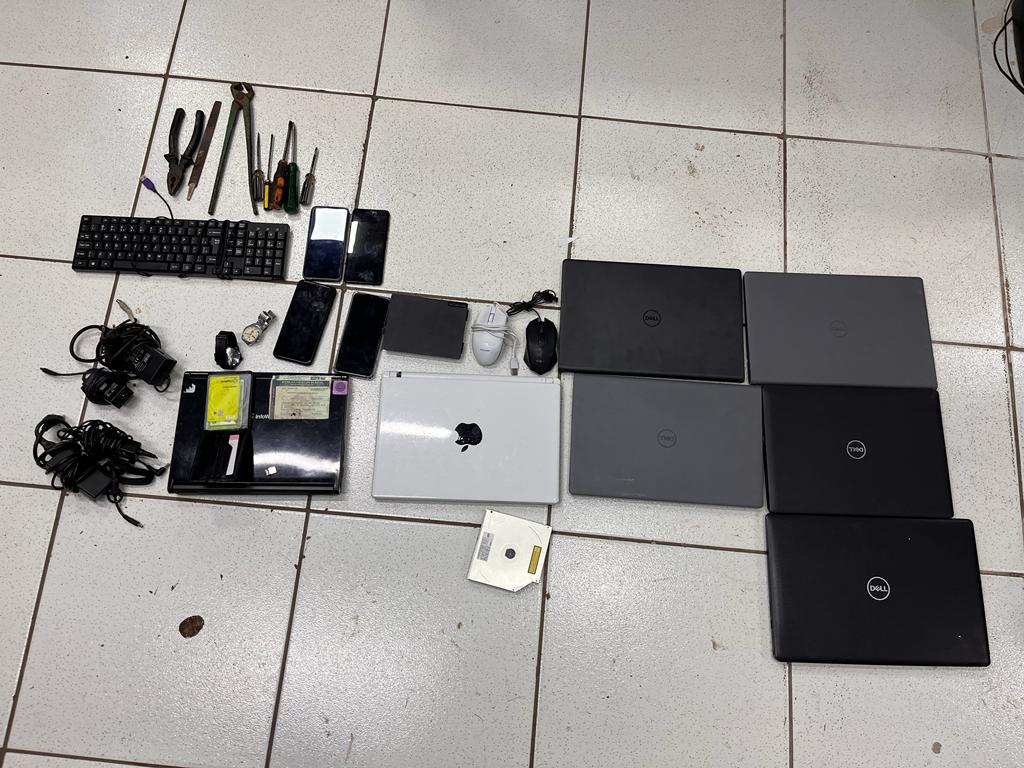 Com o rapaz foram encontrados os objetos furtados na agência bancária, bem como as ferramentas que utilizava para a prática criminosa, sendo alicates e chaves de fenda, turquesa, entre outras. Ele foi preso em flagrante por furto qualificado.