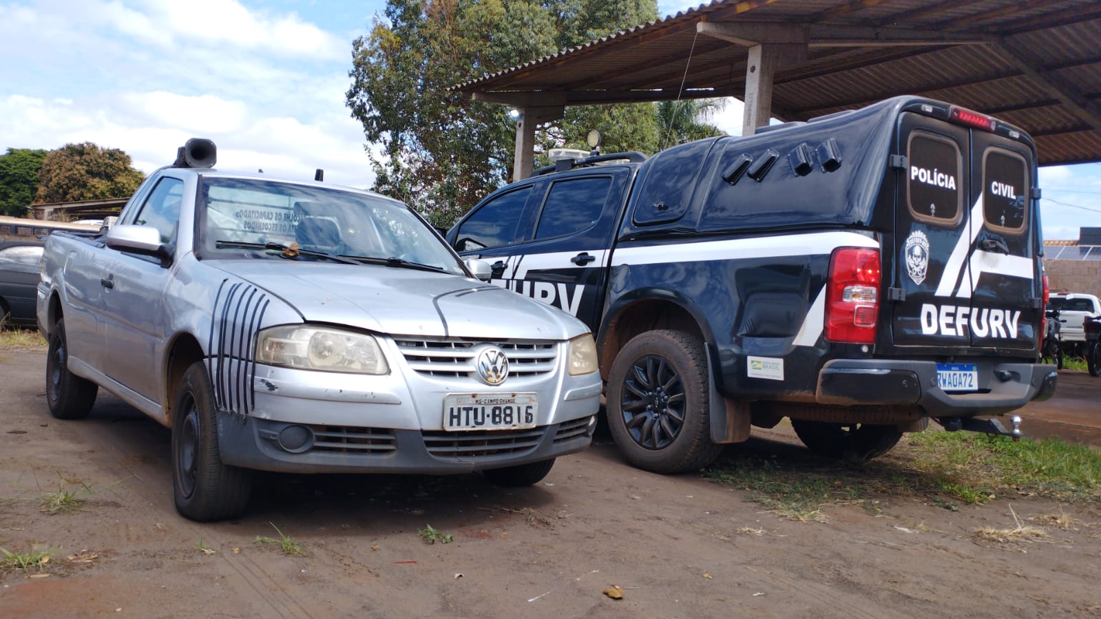 Durante deslocamento para apurar um roubo ocorrido na noite anterior, os policiais civis visualizaram um veículo VW Saveiro com indícios de adulteração na placa. Ao realizar a abordagem, a equipe confirmou que as placas haviam sido modificadas com o uso de fita isolante.